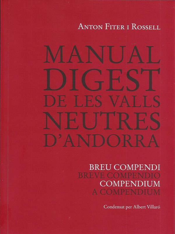 MANUAL DIGEST DE LES VALLS NEUTRES D'ANDORRA. BREU COMPENDI. BREVE COMPENDIO. COMPENDIUM. A COMPENDIUM